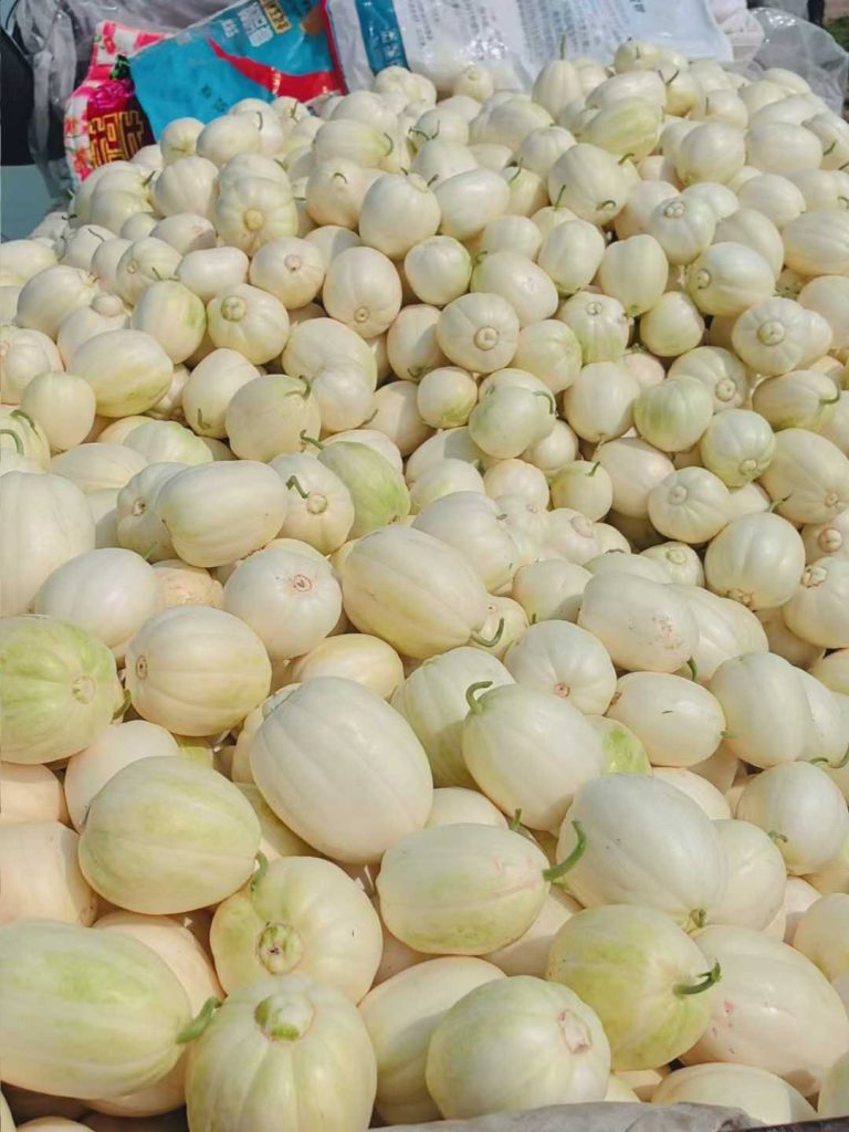 薄皮甜瓜早熟新品种、长势强,落花27天左右成熟,腔小肉厚,甜脆爽口有瓜香。产量、糖度较高,表面亮丽美观,皮色瓷白,转色早且不假熟,采收集中。子孙蔓均可留瓜,正常气候条件从出苗到采收约50天、单果400克左右,高抗枯萎病,霜霉病、白粉病,耐贮耐运,全国薄皮甜瓜产区均可栽培。